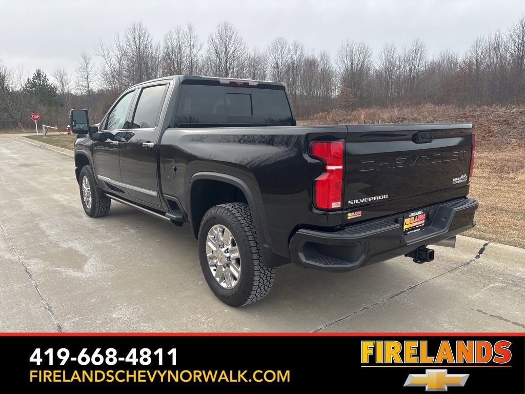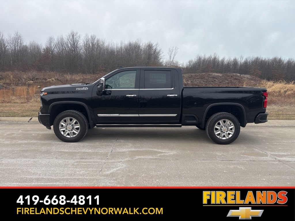 Black 2025 Chevrolet Silverado 2500HD High Country 4WD 10-Speed Automatic Duramax 6.6L V8 Turbodiesel Silverado 2500HD High Country, Duramax 6.6L V8 Turbodiesel, 10-Speed Automatic, 4WD, Jet Black Leather.