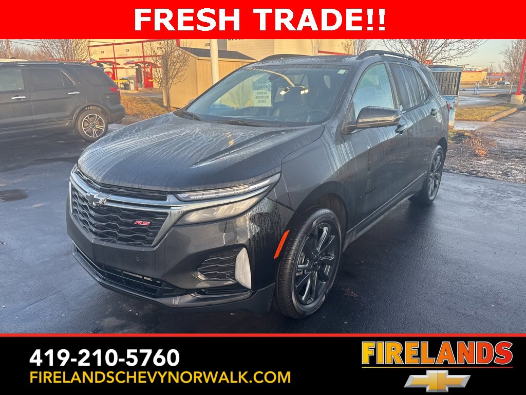 2023 Chevrolet Equinox RSCar Bravo Certified, 1-Owner, Great Price, Clean CarFax, Like New, 4WD / 4x4 / AWD, Leather Seats, Heated Seats, Heated Steering Wheel, Heated & Cooled Seats, Sunroof/Moonroof, Panoramic Roof, Remote Start, Navigation System, CarPlay, Android Auto, Bluetooth, Backup Camera, Parking Sensors, Automatic Parking, Steering Wheel Controls, Cruise Control, Multi Zone Climate Control, Keyless Start, Keyless Entry, Power Lift Gate, Premium Audio, Satellite Radio, Premium / Alloy Wheels, Equinox RS, 4D Sport Utility, AWD, Mosaic Black Metallic, Jet Black Leather, 120-Volt Power Outlet, 2 Rear USB Charging-Only Ports, 2 USB Data Ports, 2 USB Data Ports w/SD Card Reader, Adaptive Cruise Control, Advanced Safety Package, All-Weather Floor Liners (LPO), Bluetooth® For Phone, Bose Premium 7-Speaker Audio System Feature, Driver Seatback Map Pocket, Floor Liner Package (LPO), HD Surround Vision, Heated Steering Wheel, Infotainment Package, Integrated Cargo Liner (LPO), Outside Heated Power-Adjustable Mirrors, Perforated Leather-Appointed Seat Trim, Preferred Equipment Group 1RS, Radio: Chevrolet Infotainment 3 Plus System, RS Leather Package, Safety & Infotainment Package, SiriusXM Radio.Clean CARFAX. CARFAX One-Owner.AWD 1.5L DOHC 6-Speed Automatic Electronic with OverdriveOdometer is 20099 miles below market average! 24/30 City/Highway MPG Recent Arrival!Welcome to the Firelands Family!! We understand that you donât want to come to a dealership and play games for hours. Thatâs why we focus on a few key principles: Be Really Fast Be Really Friendly, Be Really Fun, Be Really Honest. The price you see is the price you pay; plain and simple! We price our cars NOT our customers and hope that you have fun when you are here. We will never advertise misleading or confusing payments thatâs not our style. Rather, we hope to give you the best retail experience possible; after all: we LIVE off repeat and referral business. Our Vehicle Specialists are NOT paid on the profit (or loss) of a vehicle. You have DIRECT access to our Sales and Finance Managers cell phone numbers. We canât wait to put our best foot forward and have you leave smiling for years to come!
