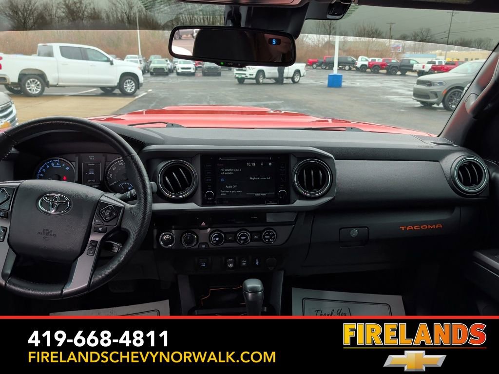 With its bold Inferno exterior color and rugged good looks, this Tacoma TRD Sport V6 is sure to turn heads wherever you go. But it's not just about appearances - this truck is built to perform, with a 3.5L V6 engine that delivers 278 horsepower and an impressive 22 MPG on the highway.