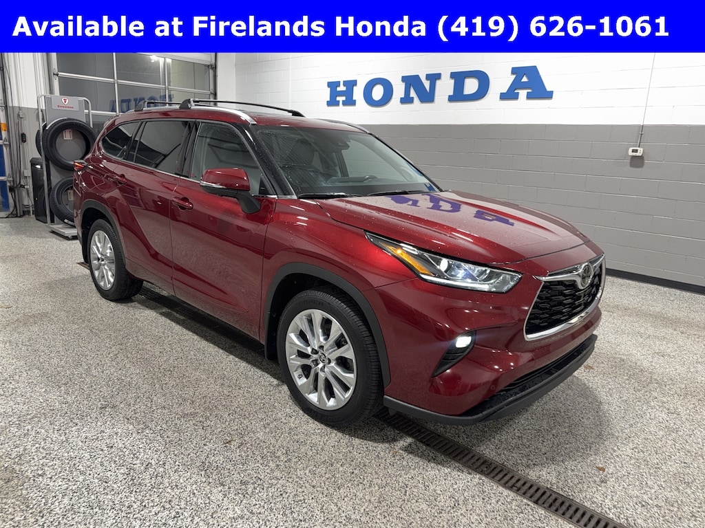 Firelands Honda is proud to offer this outstanding 2023 Toyota Highlander in Ruby Flare Pearl. This Highlander has been checked by our award winning service department. Hot features include: Bluetooth Hands Free, Back Up Camera, Local Trade, Adaptive Cruise Control, Balance of Factory Warranty, Service Records Available, All-Wheel Drive, Heated Leather Seats, 3rd Row Seating, Locally Owned New Car Trade, Lane Departure Warning, Apple Carplay/Android Auto, Blind Spot Detection, Fog Lights, Automatic Emergency Braking, Forward Collision Warning, Rear Cross Traffic Alert, Moonroof / Sunroof, Clean CARFAX, One Owner, No Accidents, 7 Passenger Seating, Power Liftgate, Memory Seats, Captains Chairs, ABS brakes, Active Cruise Control, Alloy wheels, Electronic Stability Control, Front dual zone A/C, Heated door mirrors, Heated front seats, Heated/Ventilated Front Bucket Seats, Illuminated entry, Leather Seat Trim, Low tire pressure warning, Navigation System, Power Liftgate, Power moonroof, Remote keyless entry, Traction control.