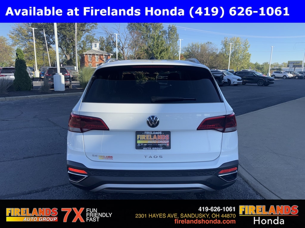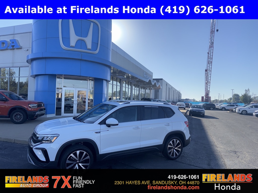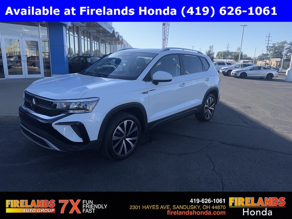 Firelands Honda is proud to offer this charming-looking 2024 Volkswagen Taos in Pure White. This Taos has been checked by our award winning service department. Hot features include: Bluetooth Hands Free, Back Up Camera, Remote Start, Adaptive Cruise Control, Balance of Factory Warranty, Service Records Available, Lane Departure Warning, Apple Carplay/Android Auto, Blind Spot Detection, Automatic Emergency Braking, Forward Collision Warning, Rear Cross Traffic Alert, Panoramic Moonroof, Clean CARFAX, One Owner, 7 or 8 Passenger Seating, Heated Front Seats.